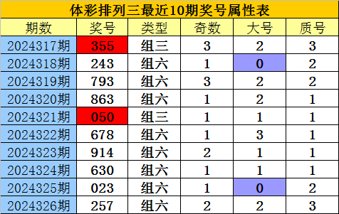 开奖回顾:排列三上期开奖号码为:257,大小比为2:1,奇偶比为2:1,质合比为3:0。
