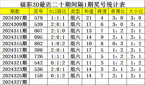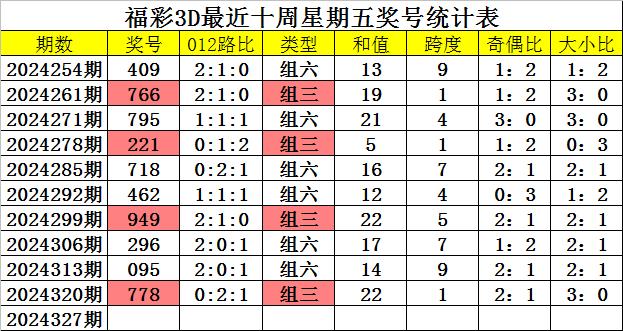奖号类型分析:从近期周五开奖数据分析,组六号码最近十周出现6次,表现较冷,当期轮空1周,组三开出4次,表现相对较热,本周五预计组六号码回补。