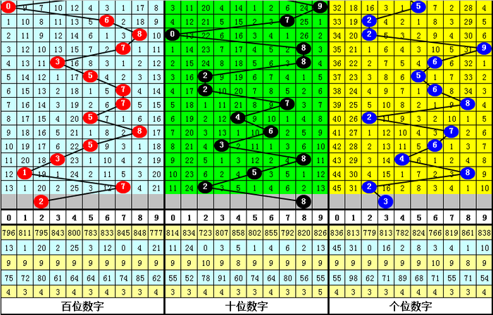 和尾分析:最近10周周五和尾为:3、9、1、5、6、2、2、7、4、2,波动了8个点位,和尾奇偶比为5:5,基本持平,和尾大小比为4:6,基本相当,本期参考和尾3。