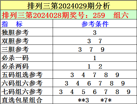 2.目前排列三组六遗漏最大的六码组合为:013569,遗漏49期。本期预计该组合不会解冻,即剩余四码中有奖号,关注号码:7。