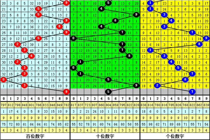 在历史开奖中,单选号码2开出9次,号码8开出8次,号码1、7、9开出7次,号码0、4、5开出6次,号码3开出4次,号码6开出3次,本期双胆参考:59。