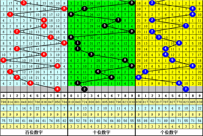 一、在下期开奖中,百位号码012路比为5:2:0,奇偶比为4:3,大小比为3:4,本期百位注意号码:1、4、8,胆码关注偶数:8。