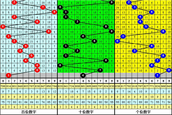 第三位上期开出奖号9,走大3点,本期看好该位走小,参考号码7。