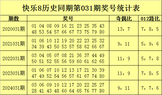 第【19、20】位在第031期历史同期开奖中出现范围为62-80区段,定位均值分别为:71.6和74.4,号码奇偶比为4:6,012路比为1:2:7,今年同期预计第19、20位同时出现1路号码,两码关注70+79。