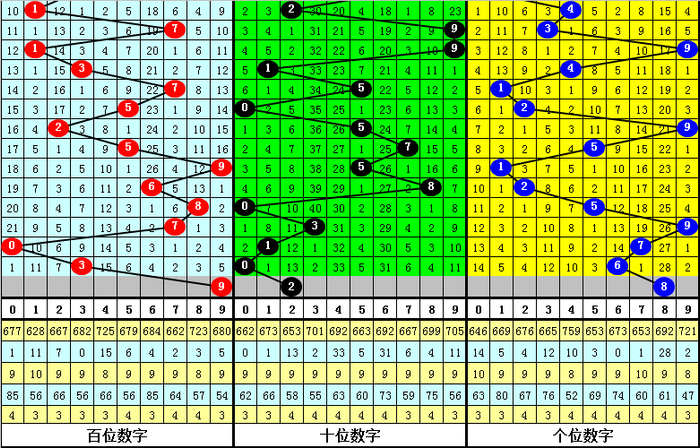 百位推荐:大号相对较热,当前遗漏2期,本期关注大号;近期0、1路号码热出,本期参考号码9。