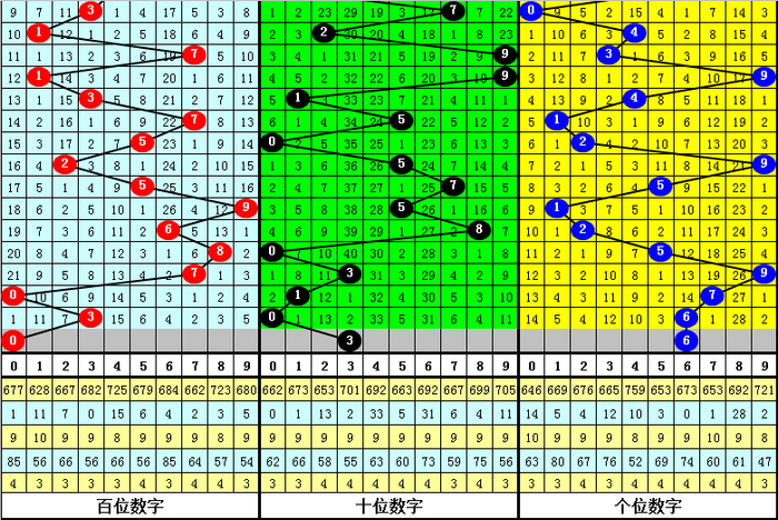 十位号码:前50期走势最活跃的号码为:8开出11个,0开出8个,5开出7个;走势最冷的号码为:2、3、6开出2个。十位号码012路比开出16:14:20,大小比开出30:20。本期十位排除两码:0、4,参考号码3、5、8,胆码关注3。