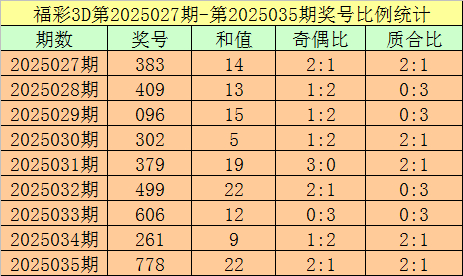 开奖回顾:福彩3D第2025035期:奖号为778,奖号质合比为2:1,大小比为3:0,跨度为1,类型为组三。