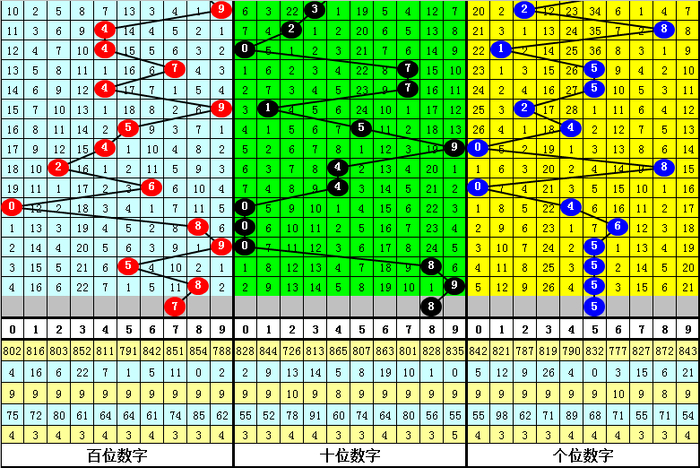 其中,号码0出现12次,1出现19次,2出现23次,3出现17次,4出现14次,5出现10次,6出现22次,7出现13次,8出现21次,9出现17次,奇偶比为76:92,奇数走冷,本期防止回补,奇偶比参考2:1;大小比为:83:85,大小 号码基本平衡,本期预计大号转热。