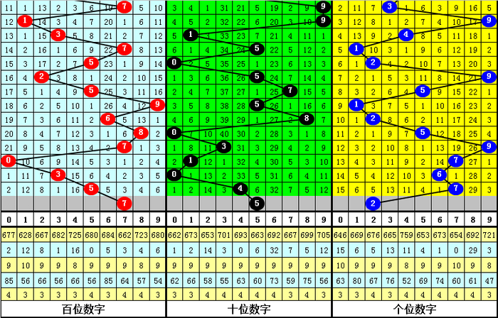 上期第二位奖号为:4,间隔33期之后开出,表现相对冷,前面10期该位温码开出频次较低,短期内适当关注温冷出现,关注号码5。
