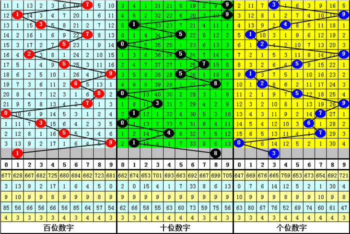 5.下期奖号跨度分别开出:6、8、4、5、3、6、7、8、3、6,其中跨度012路比为5:2:3,大小比7:3,奇偶比为4:6,本期适当关注奇数跨度开出,参考跨度7。