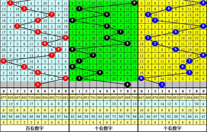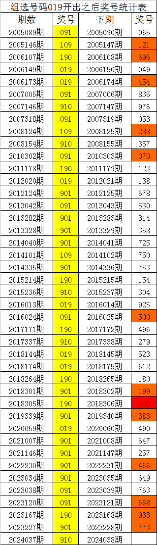 从上表可以看出,组选号码019开出之后,出现次数最多的三个号码分别为:305,本期防这三码中落号;出现次数最少的三个号码分别为:281,本期预计这三个号码不会同时出现,本期杀一码:2。