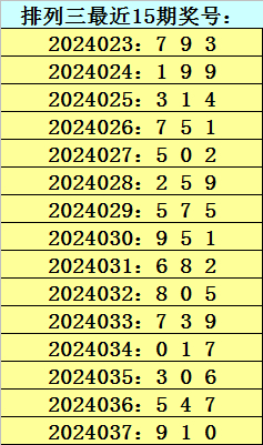 四叔体彩排列三第2024038期推荐:
