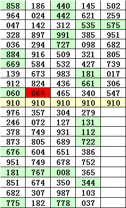 另外,历史上直选号码910开出5次,其下期开出奖号为:976、357、304、279,前后10期分别开出号码: