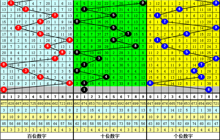 其中,号码奇偶比为31:29,奇偶号码走势基本持平;号码大小比为27:33,大号表现疲软;号码012路比为29:12:19,0路号码表现较热。