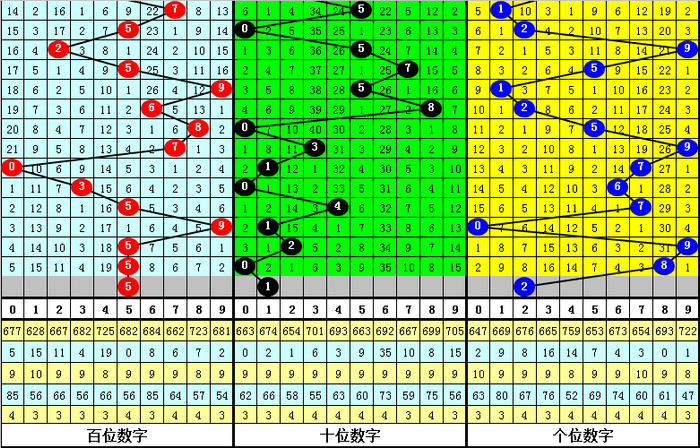 百位上期开出号码5,为奇数,奇数号近期开出相对较多,奇数号目前连续出现了5期,没有转冷的迹象,本期看好再次开出奇数号,参考号码5。