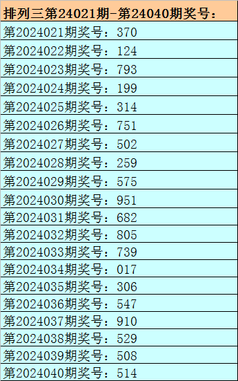1.排列三最近十期分别开出号码:682-805-739-017-306-547-910-529-508-514,其中有6期奖号开出了上期的重复号码,本期预计第2024040期奖号:514中有重号,参考号码:1。