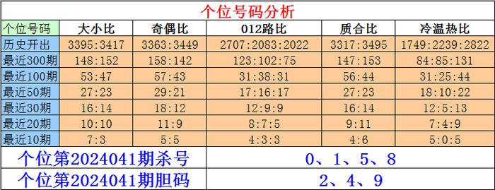 近期个位质数号码走冷,目前轮空4期,本期注意质数号码出现;近期该位小号出现相对较少,上期出现之后,本期继续关注小号。个位杀号:0158,胆码关注:249。