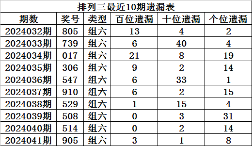 上期回顾:排列三第2024041期奖号:905,组六,直选遗漏总值为12期。