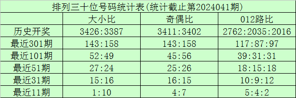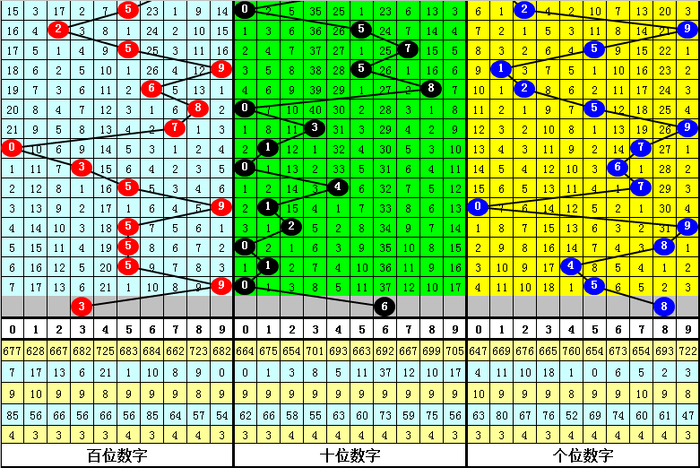 在连续11期奖号中,该位012路比为5:4:2,2路号码较少,目前012路号码遗漏期数分别是:0期、1期和3期,本期预计出现0路奖号。