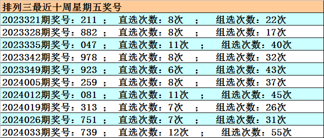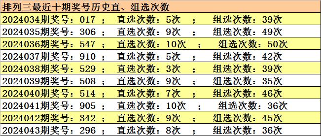 开奖回顾:排列三2024043期开奖:296,组六,和值17,跨度7,奇偶比1:2,大小比2:1。