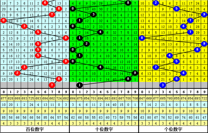 百位上期开出号码8,为偶数,奇数号近期开出相对较多,奇数号目前遗漏2期,本期适当关注奇数号再次出现,关注号码7。