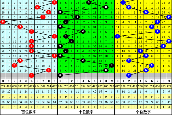 跨度判断:连续10期跨度开出012路比为5:3:2,012路跨度基本持平,跨度最近3期遗漏值分别为12期、4期和7期,本期预计跨度遗漏值走大,防温冷跨度解冻,参考跨度5。