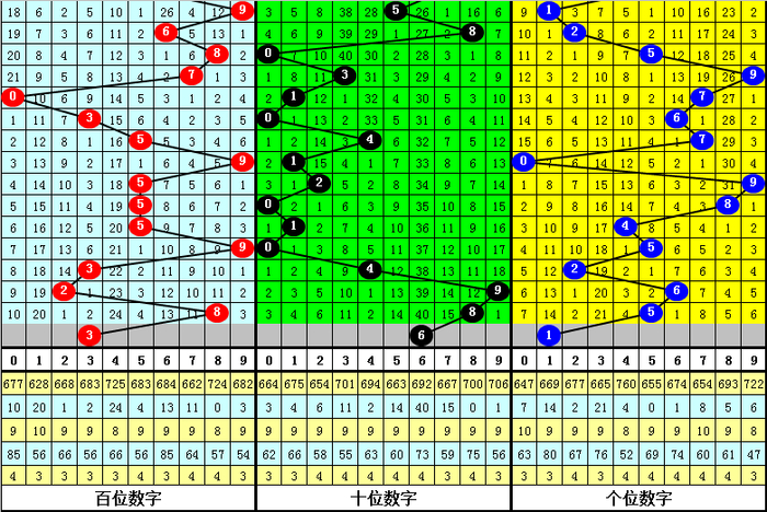 本期首位号码注意2路跨度,参考跨度0、2、5。
