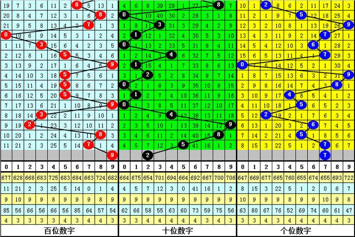 百十位差推荐:前三期百十位差分别开出7-0-2,本期预计百十位差走大,注意7出现。