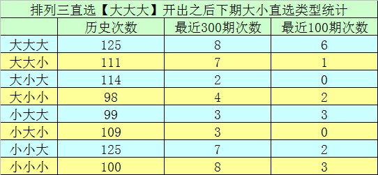 2。在前9次直选[大大大]组合之后,下期开奖号码分别为:923-665-259-405-187-859-313-951-757,组三包含3期,组六包含6期。本期奖号排除对子,看好开出组六。