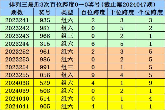 第2023252-第2023254期奖号:961、986、991,其下期奖号为:056,首位号码跨度为9;