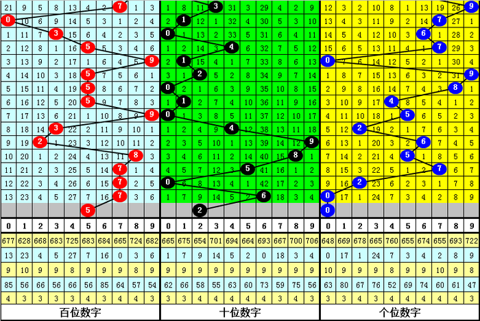 二、在最近22期开奖中,奖号:5、0、7、9,开出期数最多,本期注意这四码中落号,关注号码0;遗漏期数最多的三码奖号为:1、3、4,当期开奖一般不会全部出现冷码,本期可以排除号码1。