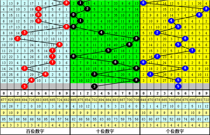 排列三第2024048期-第2024050期分别开出奖号:396、631、495。