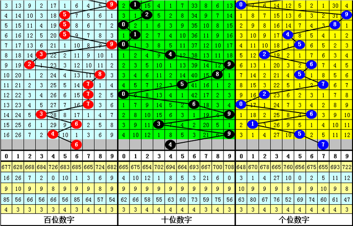在历年排列三第051期开奖中:号码大小比为25:32,大号表现较冷,本期看好大号回补,大小比关注2:1。