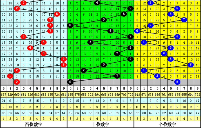其中,组三开出9次,组六开出10,单选号码0-9分别出现: