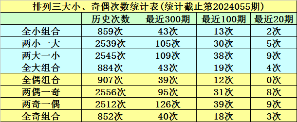 上期回顾:排列三第2024055期奖号:173。类型:组六,奇偶形态:奇奇奇,大小形态:小大小,和值:11,跨度:6。