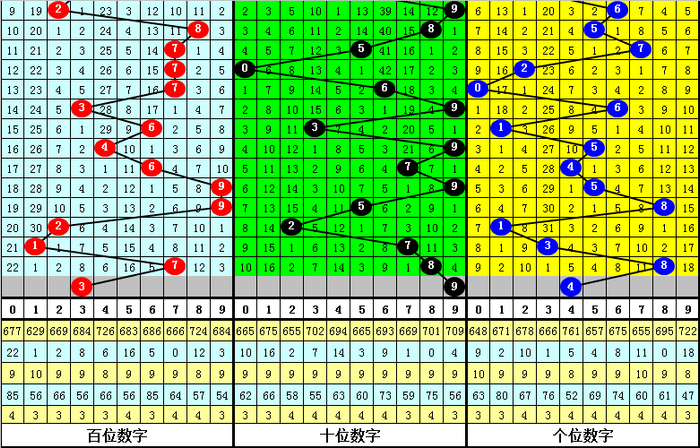 百位分析:该位最近10期出现范围在1-9之间,波动了9个点位,波动范围较大,上期开出号码7,上升了6个点位,本期看好该位号码下降。另外该位最近10期大小比为6:4,小号表现较冷,本期看好小号逐渐回补,参考号码3。