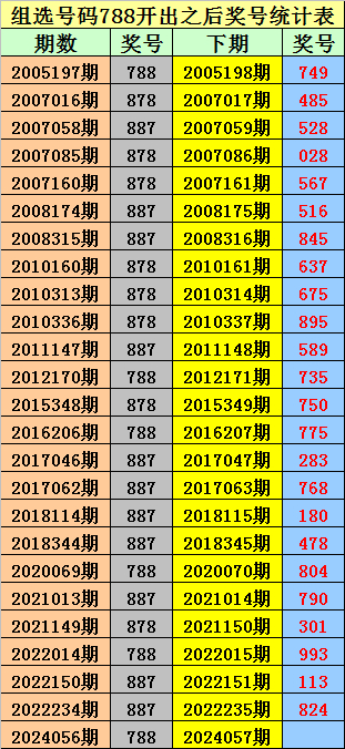 上期回顾:排列三第2024056期开奖号码为788,历史上组选出现25次,直选出现6次。