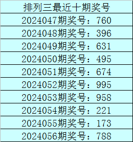 开奖回顾:排列三第2024056期奖号:788,类型:组三,奇偶比1:2,大小比3:0,和值23,跨度1。