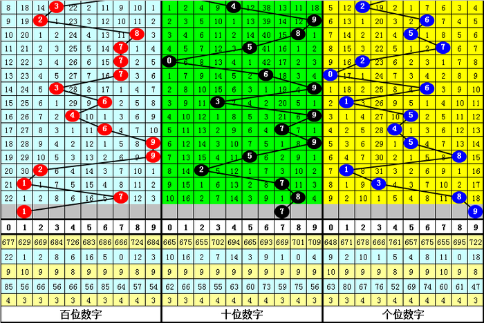 跨度判断:连续10期跨度开出012路比为3:5:2,012路跨度基本持平,跨度最近3期遗漏值分别为49期、6期和1期,本期预计跨度遗漏值走大,防温冷跨度解冻,参考跨度8。