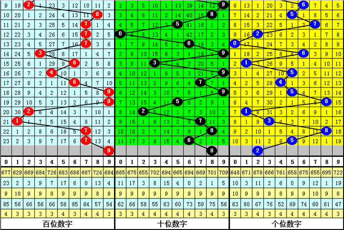 跨度判断:连续10期跨度开出012路比为3:4:3,012路跨度基本持平,跨度最近3期遗漏值分别为6期、1期和11期,本期预计跨度遗漏值走大,防温冷跨度解冻,参考跨度7。