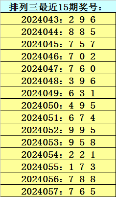 四叔体彩排列三第2024058期推荐: