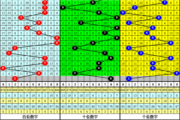百十位差推荐:前三期百十位差分别开出1-6-4,本期预计百十位差走大,注意6出现。