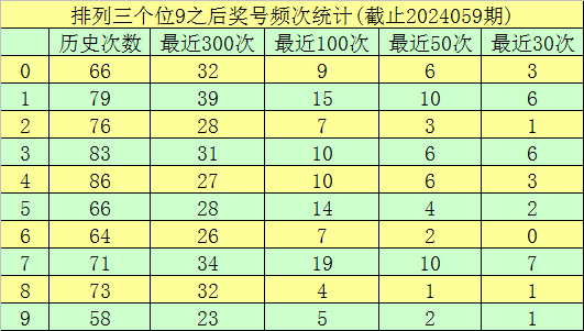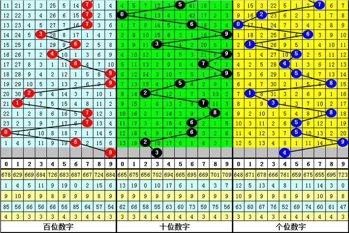 第三位杀号:第三位上期出现奖号9,该位历史上奖号9已开出了723次,最近100次第三位开出9时,下期号码0-9分别落号:号码7→19次,1→15次,5→14次,3、4→10次,0→9次,2、6→7次,9→5次,8→4次。