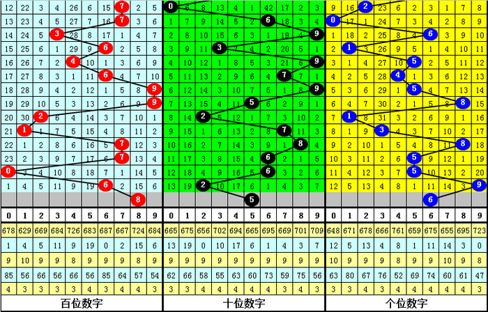 百位号码奇偶比为3:5,偶数号码热出,本期预计偶数号码再出;大小比为5:3,大号走势较热,本期防止大号再次出现。