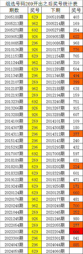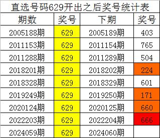 从上表统计可以看出,直选号码629开出之后,其下期奖号: