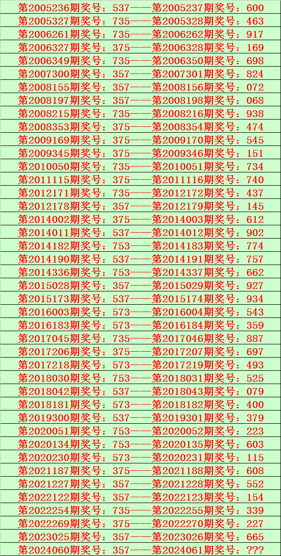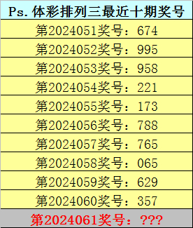 开奖回顾:体彩排列三第2024060期奖号为:357,类型:组六。