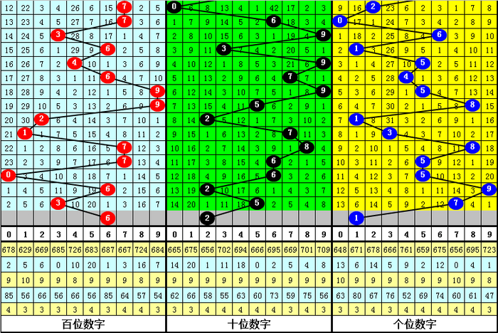 百位:上期开出3,近10期012路比为6:3:1,其中0路号连开3期,本期关注0路号,参考6。