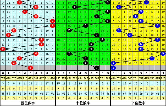 个位:其下期奖号1路和2路在该位大热,0路近7次全部轮空,本期该位注意0路解冻,关注号码0。