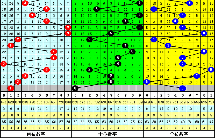 百位:近期大小号码开出比例基本相当,小号当前连续出现了2期,逐渐转热,本期看好该位小号继续热出;另外,该位0路和1路号码在最近20期奖号中走势较热,2路号码表现相对较冷,本期该位放弃2路号码,参考号码1。