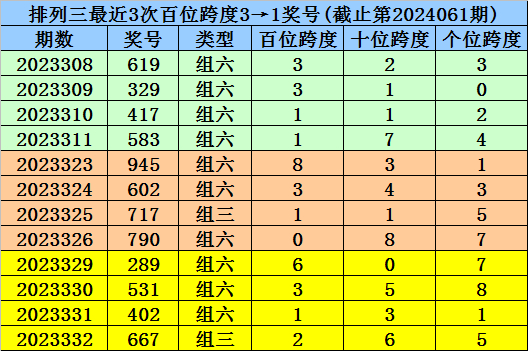 第2023329-第2023331期奖号:289、531、402,其下期奖号为:667,首位号码跨度为2;